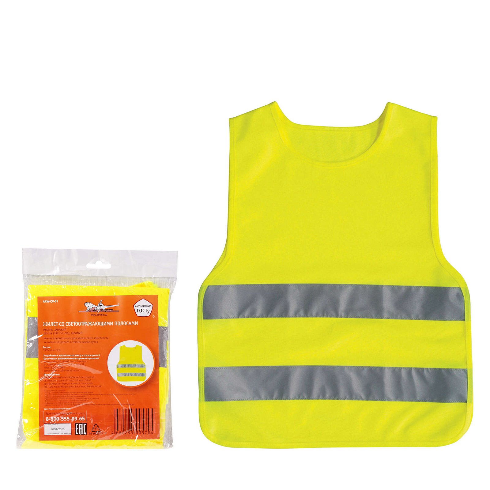 Жилет аварийный со светоотражающими элементами детский желтый (AIRLINE) ARW-CV-01