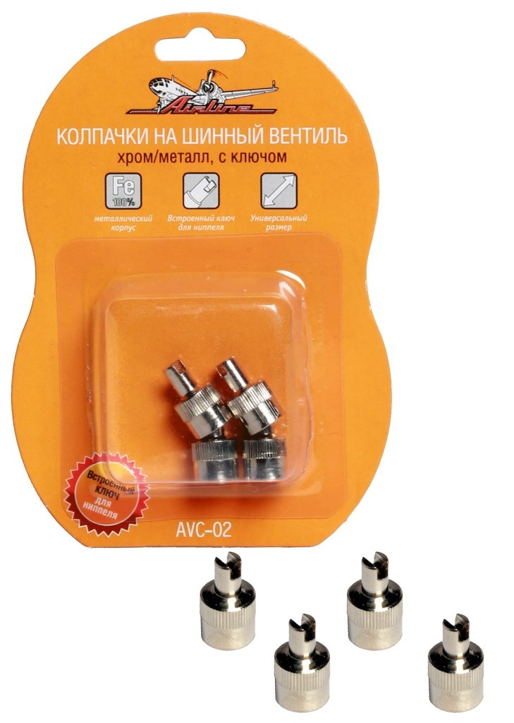 Колпачок золотника с ключом хром металл (4шт) (AIRLINE) AVC-02