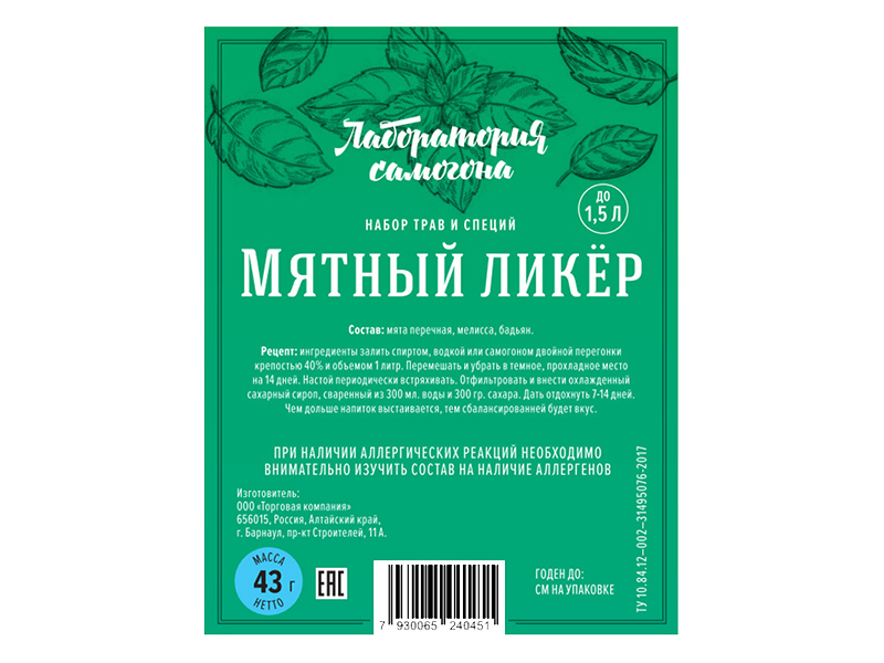 Добавка "Мятный ликёр" набор трав и специй