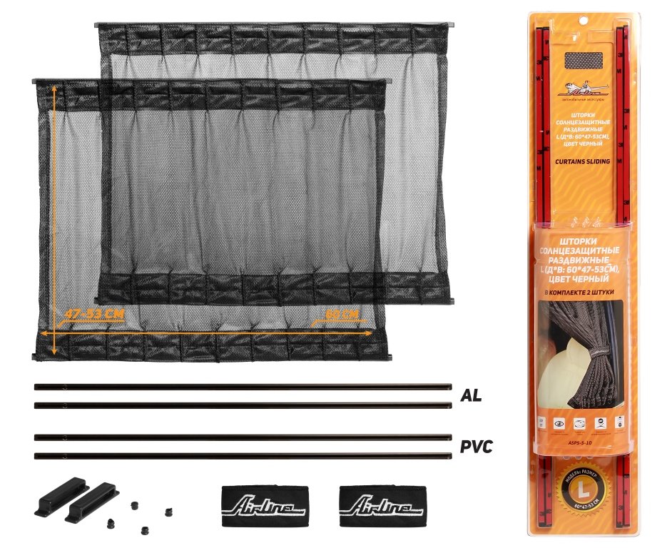 Шторки боковые раздвижные (60x47-53см) 2шт.(Airline) ASPS-S-10