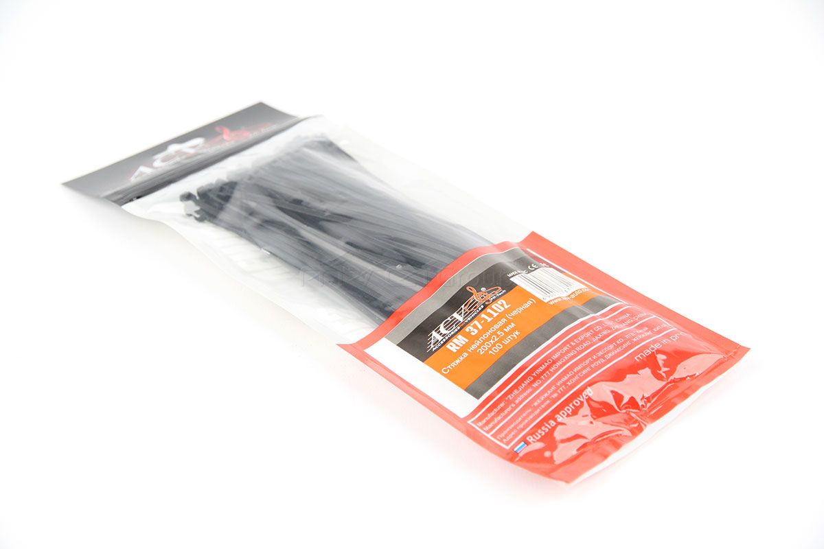 Стяжки 200*2,5 черн ACV RM37-1102) 100 шт./уп.