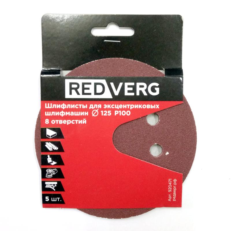 Шлифлист самоклеющийся без отверстий 125мм Р100 (5шт) Redverg 920691
