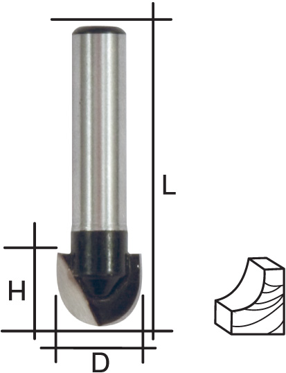 Фреза пазовая галтельная (хвостовик 8мм; D 8мм; H 6мм; R 3,96 мм; L 46,5мм) FIT 3602-080608