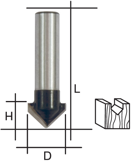 Фреза пазовая V-образная (хвостовик 8мм; D 10мм; H 10мм; а° - 90°; L-46,5мм) FIT 3603-081010