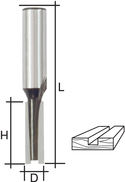 Фреза пазовая прямая с двойным лезвием (хвостовик - 8мм; D-6мм; H - 20мм; L-60мм) FIT 3601-082006