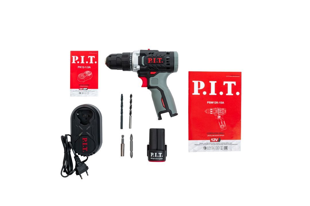 Дрель-шуруповерт 12 В АКБ 1.5 Ачх1 PBM12K-10A/1 P.I.T. (25H, зарядка, коробка)