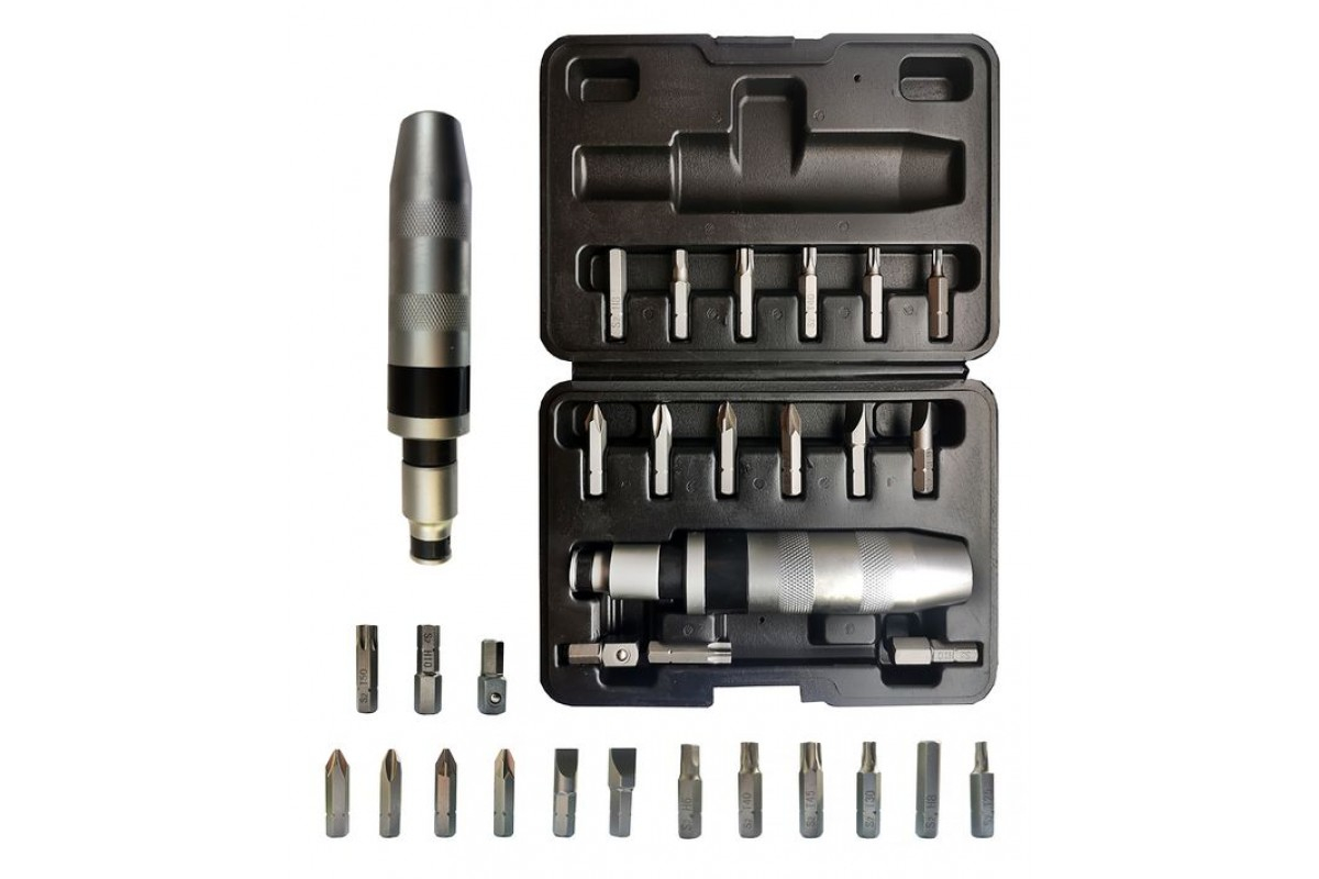 Отвертка ударная, 6 CrV специальных бит, стальной хромированный корпус, пластиковый кейс 56267