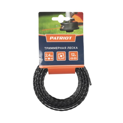 Леска PATRIOT D 2,4 мм L 12 м (скрученный квадрат, черный) 805205125