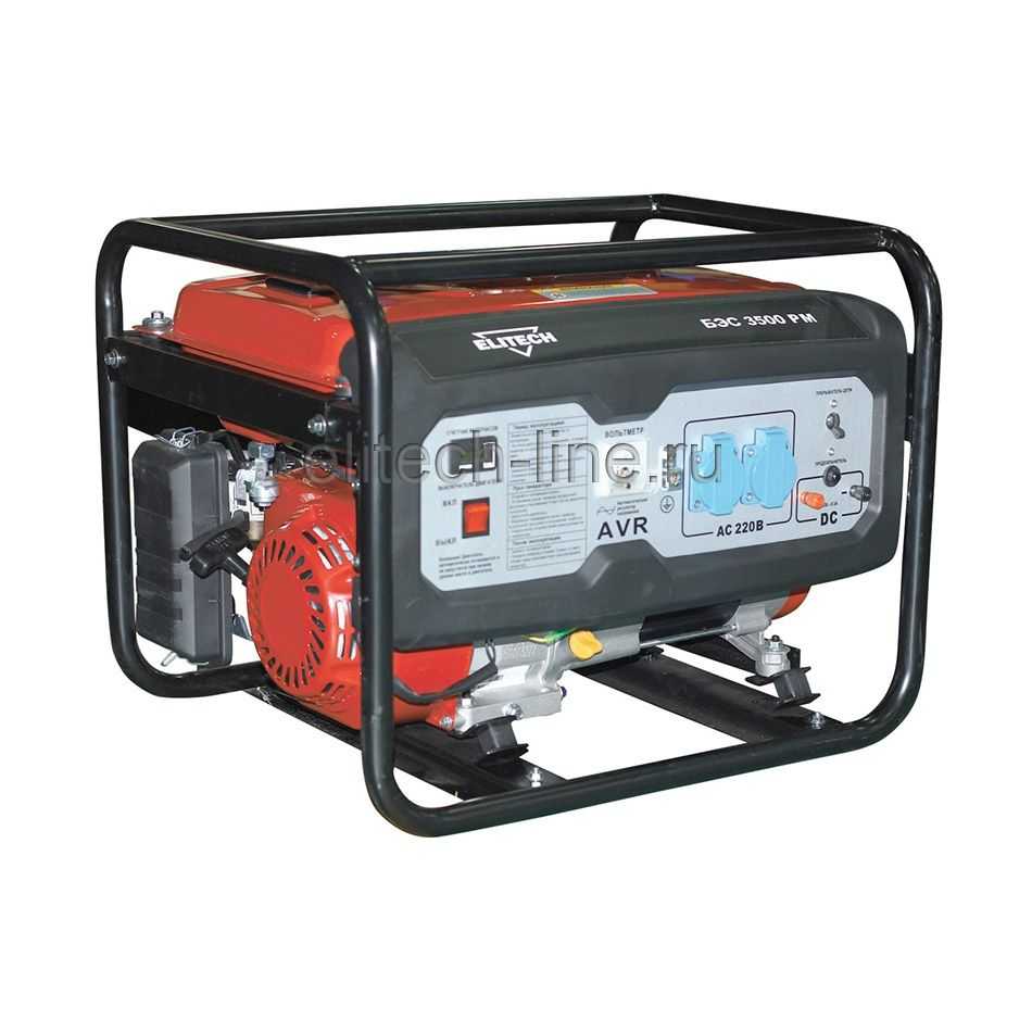 Генератор бензиновый 3,1 кВт Elitech БЭС 3500 РМ (4 такт, 3,1/2,8 кВт, бак 15 л, 1,49л/ч, 54 кг)