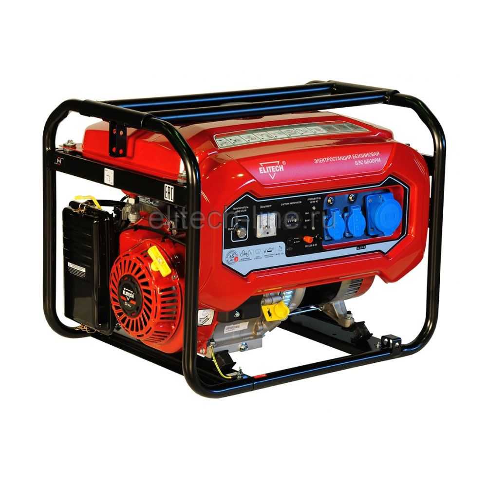 Генератор бензиновый 5,5 кВт Elitech БЭС 6500 РМ (4 такт, 5.5/5.0 кВт, бак 25 л, 90 кг)