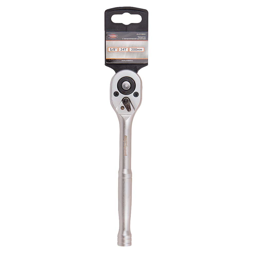 Трещотка *200 мм 24-зубца с металлической гладкой рукояткой 3/8" "AV Steel" AV-518602