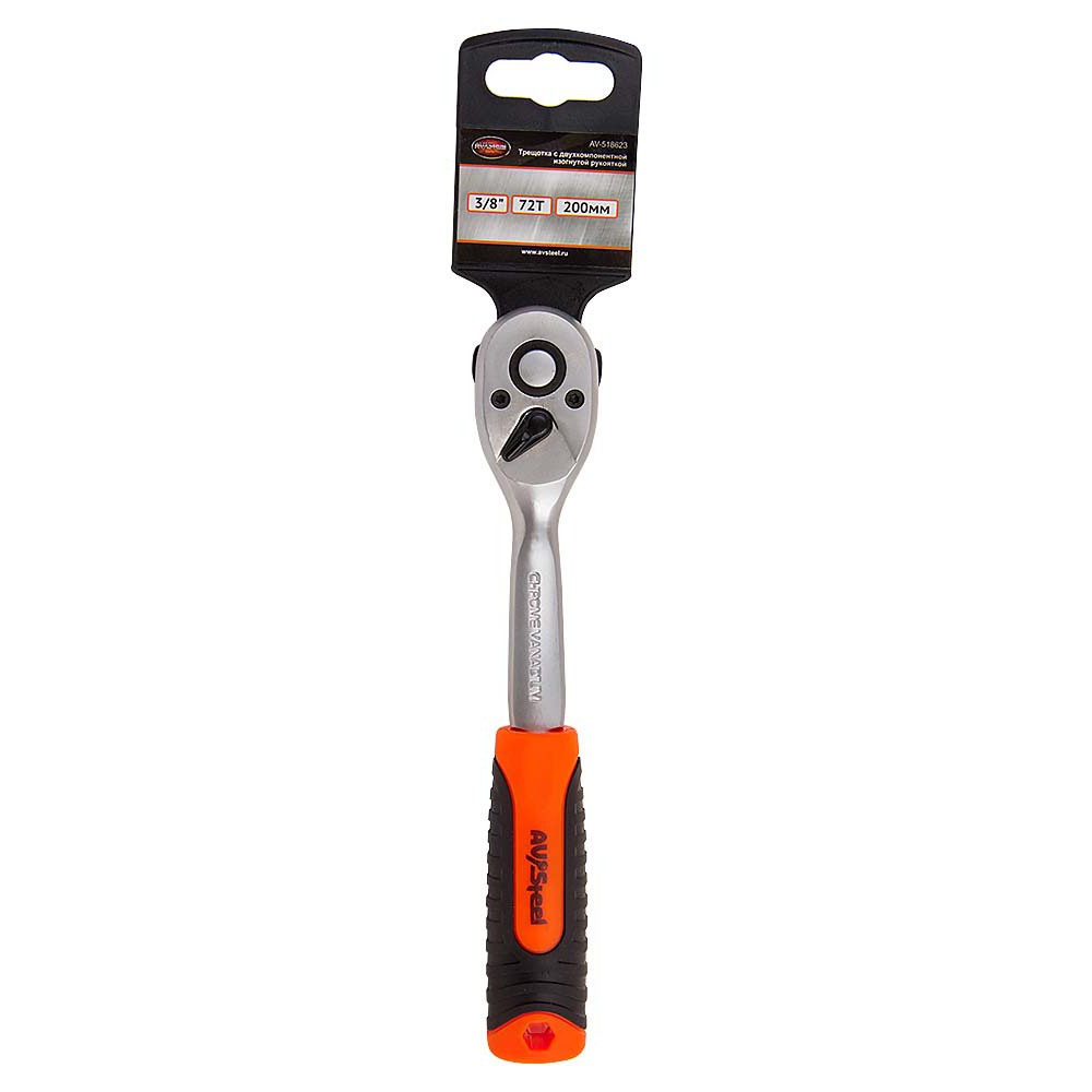 Трещотка *200 мм 72-зубца с двухкомпонентной рукояткой 3/8" "AV Steel" AV-518621