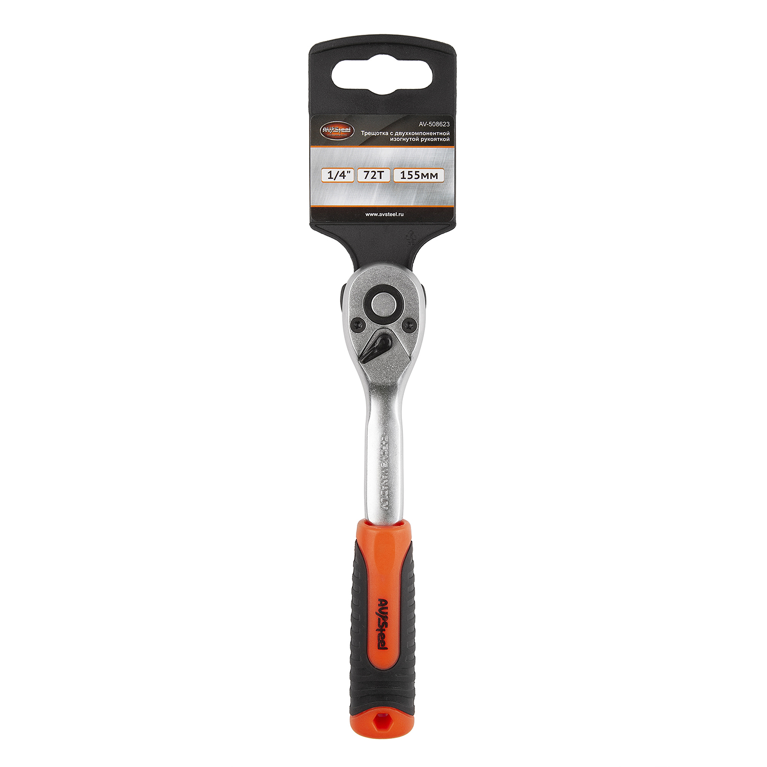 Трещотка *155 мм 72-зубца с двухкомпонентной изогнутой рукояткой 1/4" "AV Steel" AV-508623