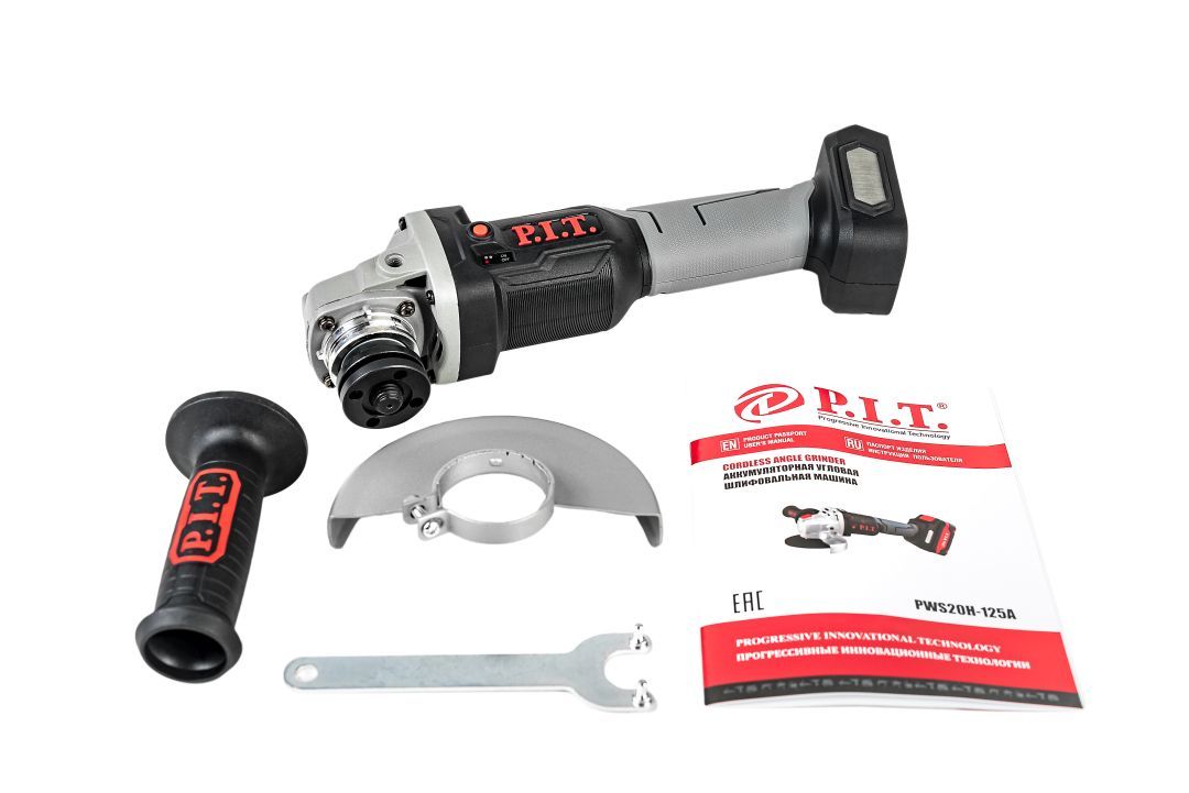 Угловая шлифмашина 125 мм 20 В МШУ АКБ 1х2 Ач бесщ. PWS20H-125B P.I.T. (4500/6500/8000, зарядка, кор